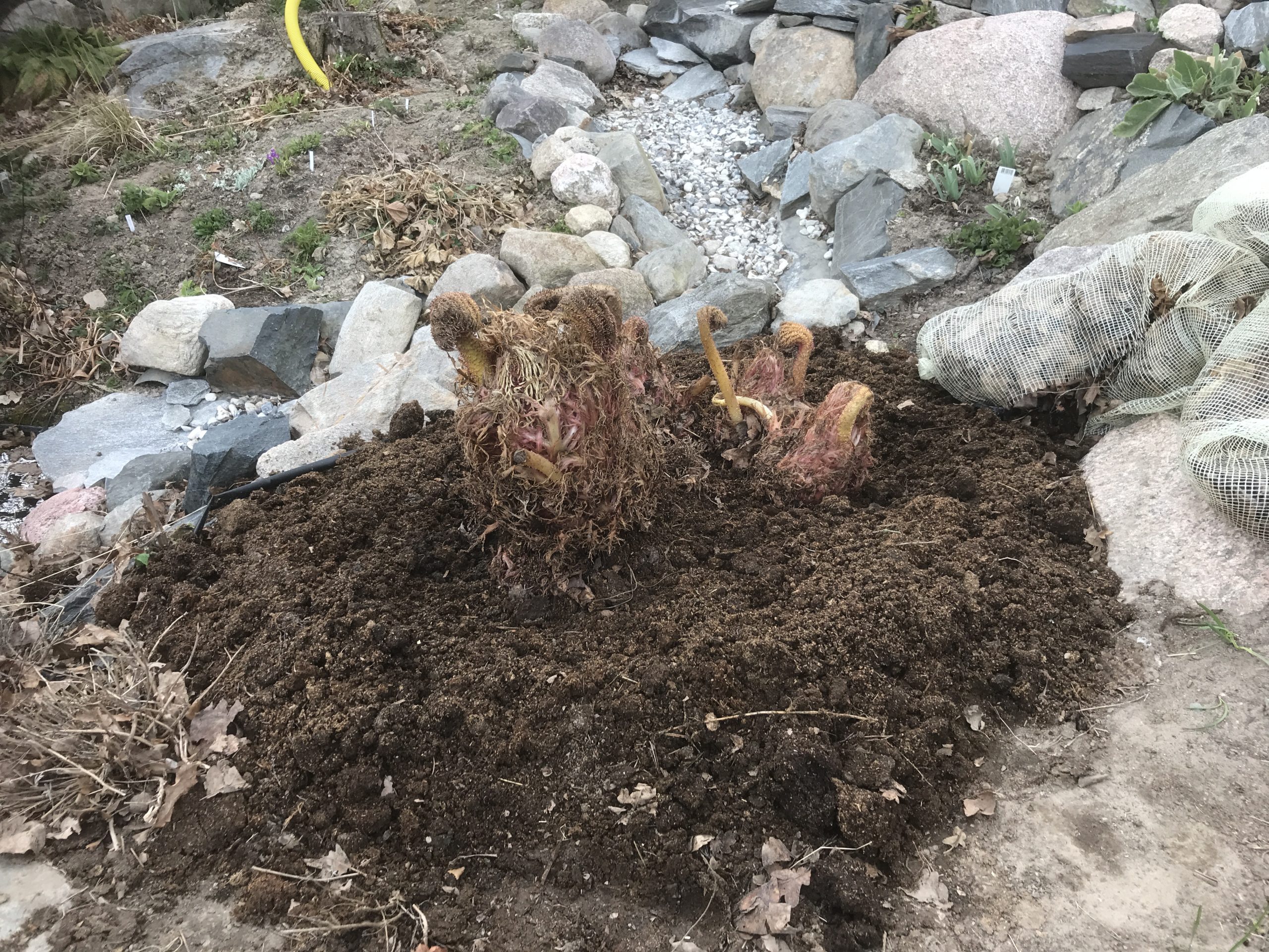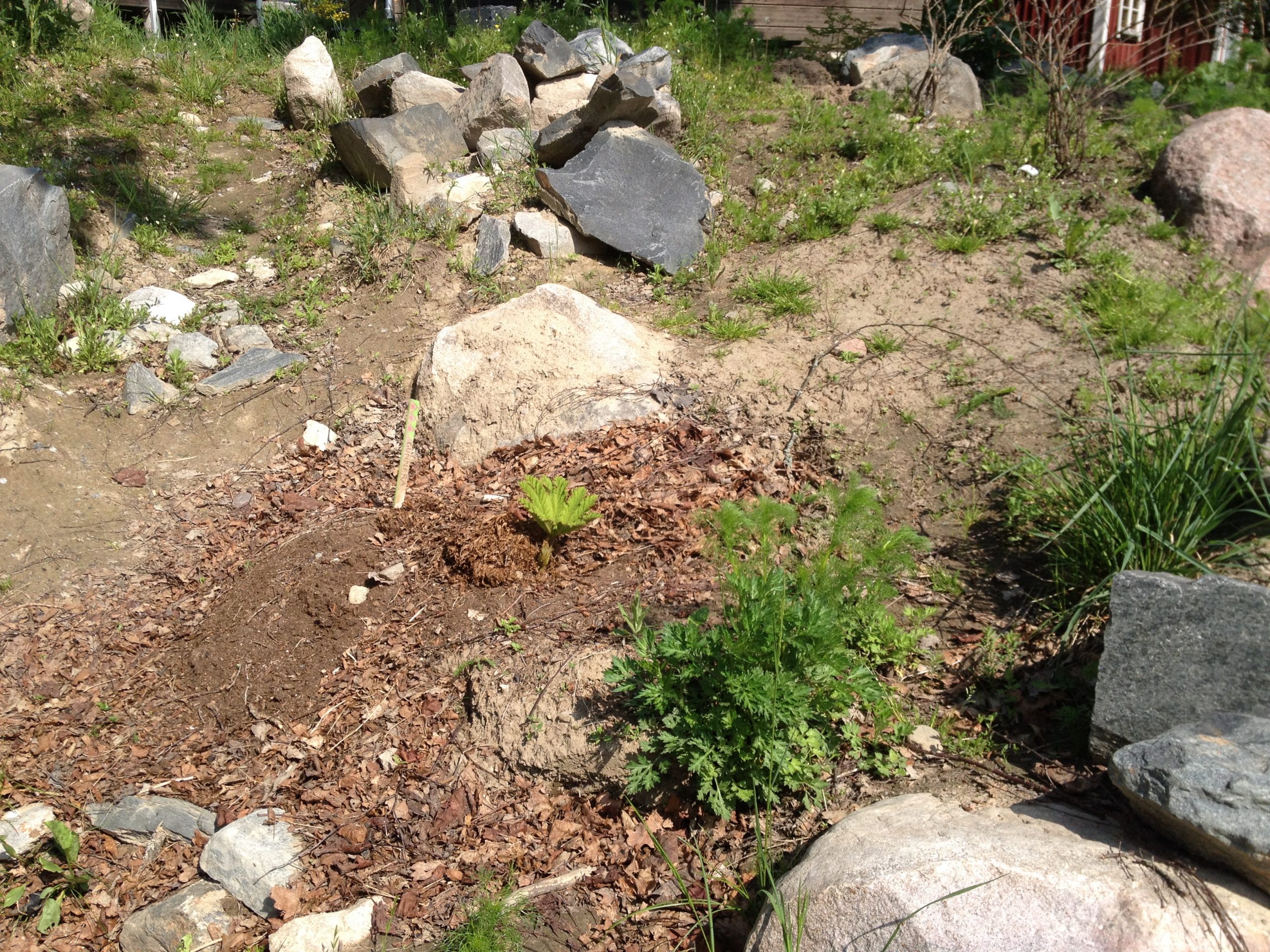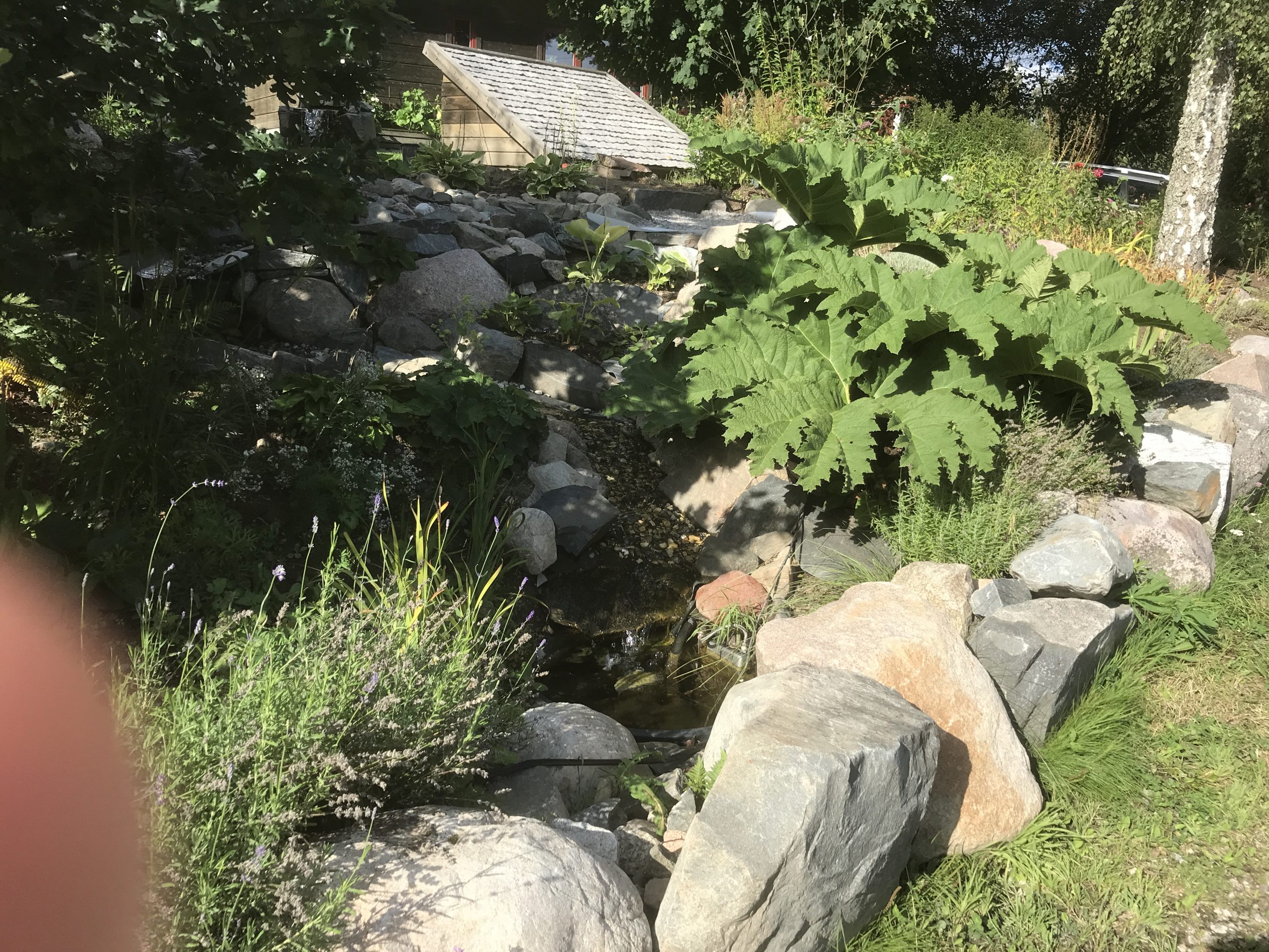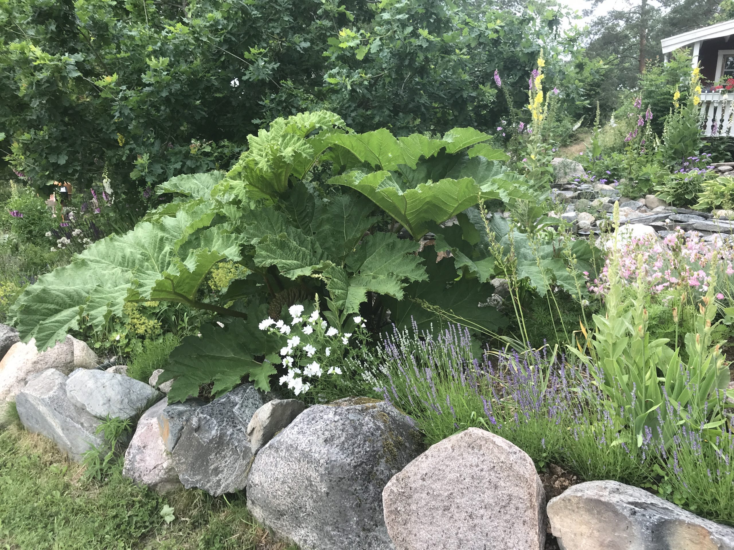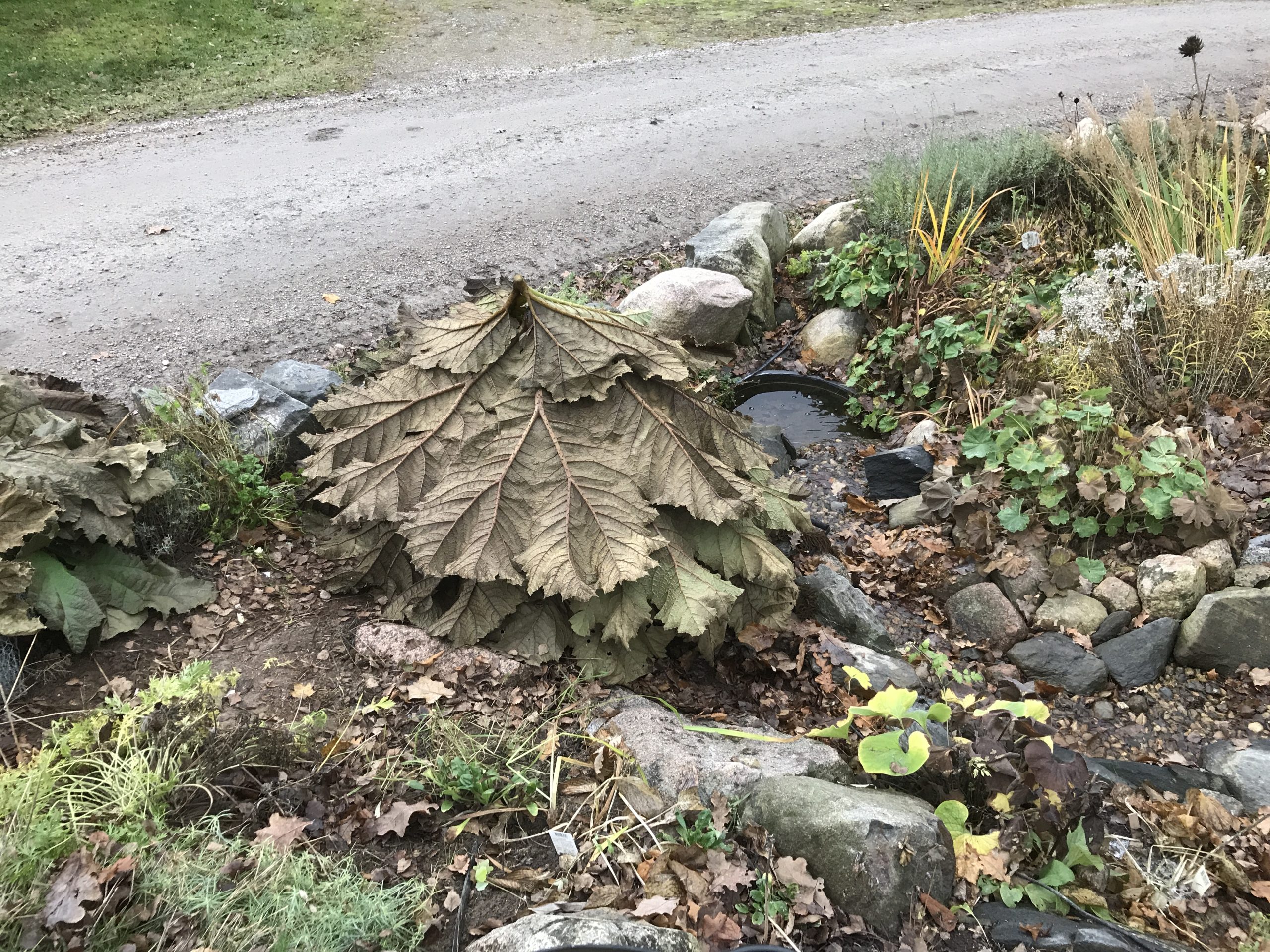 Gunnera manicata är världesn största perenn. Vi har haft vår Gunneran sedan 2014. Vi besökte Bokmässan i Göteborg på hösten 2014. Temat för Bokmässan var Brasiliansk litteratur. Man hade också en trädgårdsutsällning med bl a Gunnera. Kerstin frågade en person om var man kunde köpa en Gunnera. Han svarade att “Du kan få köpa den här på söndag kväll”. De gjorde upp om ett pris på söndagkvällen när mässan hade stängt var vi där och hämtade den.