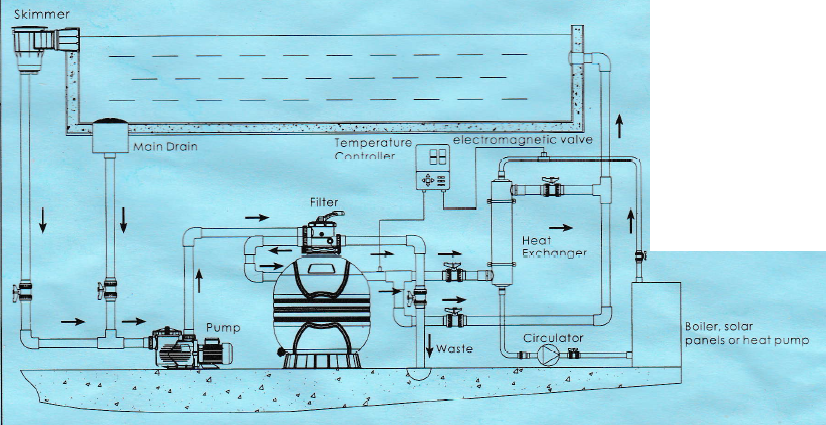 Badtunnans vatten värms upp av fastighetens uppvärmningssystem.
