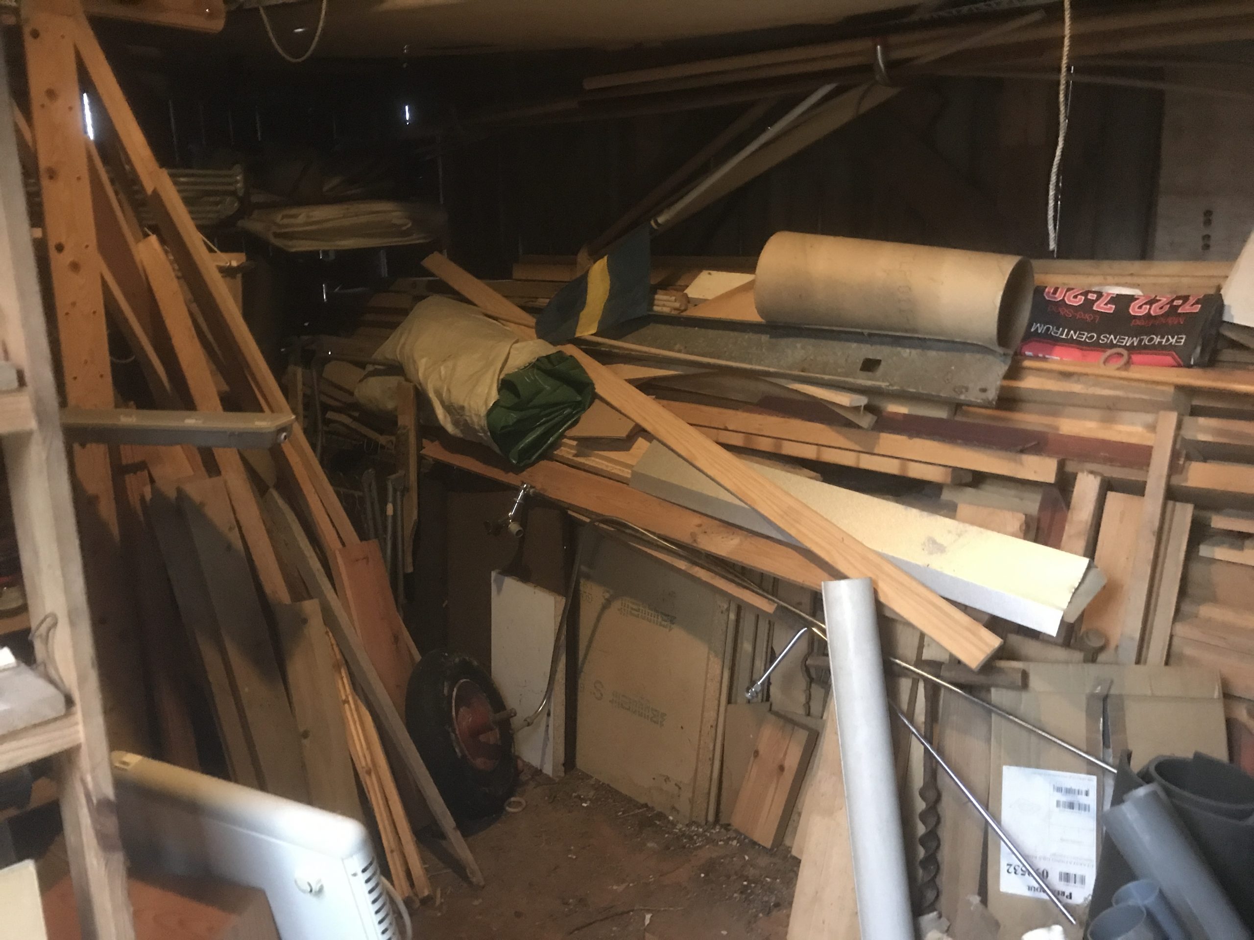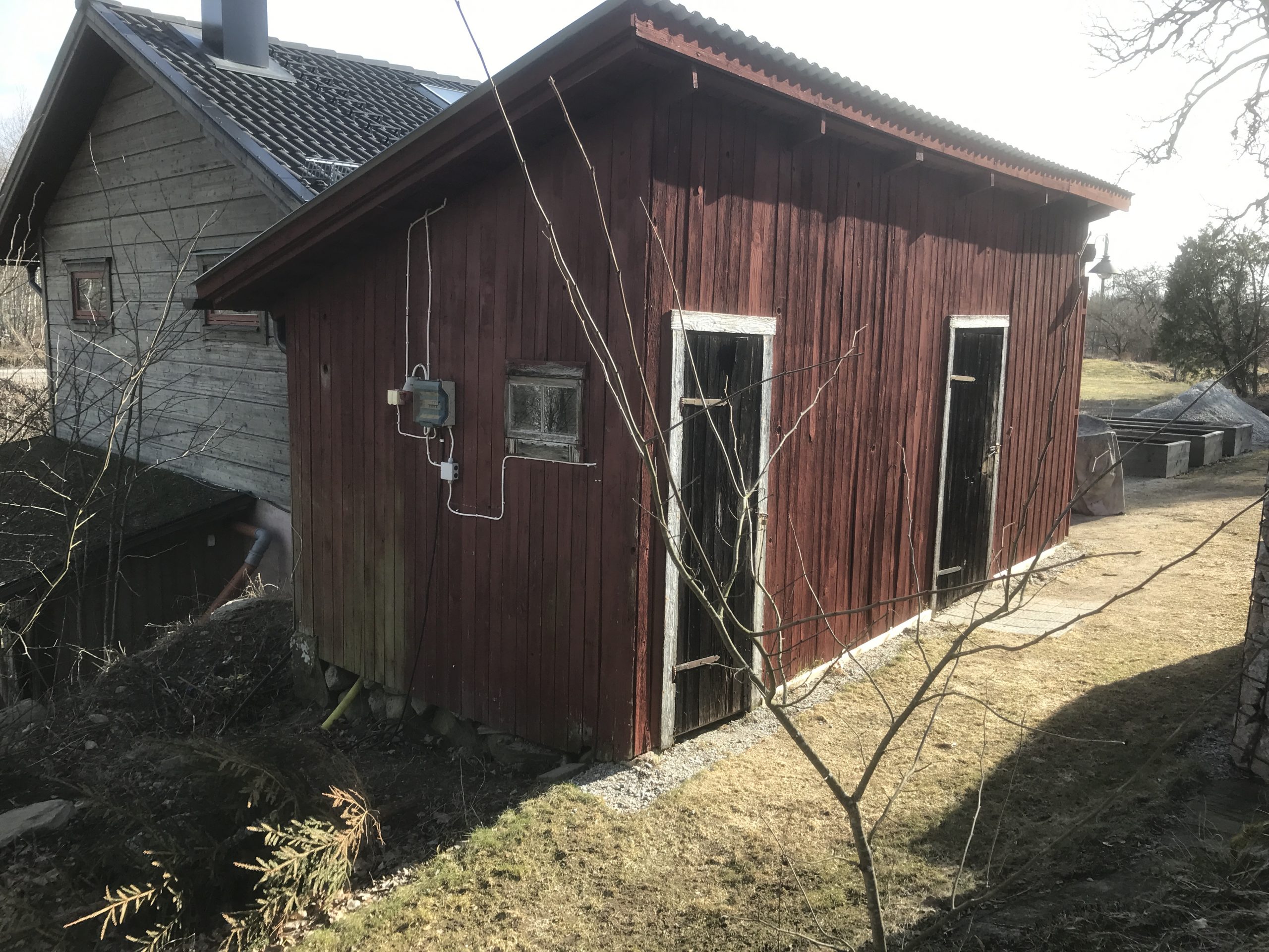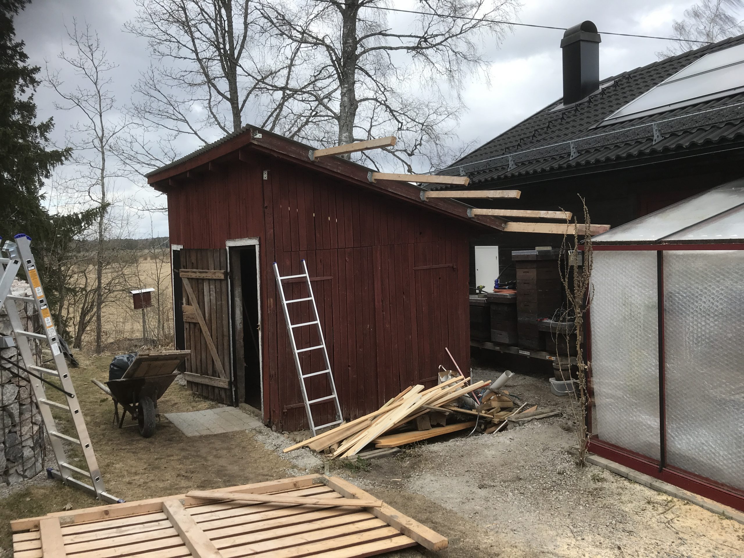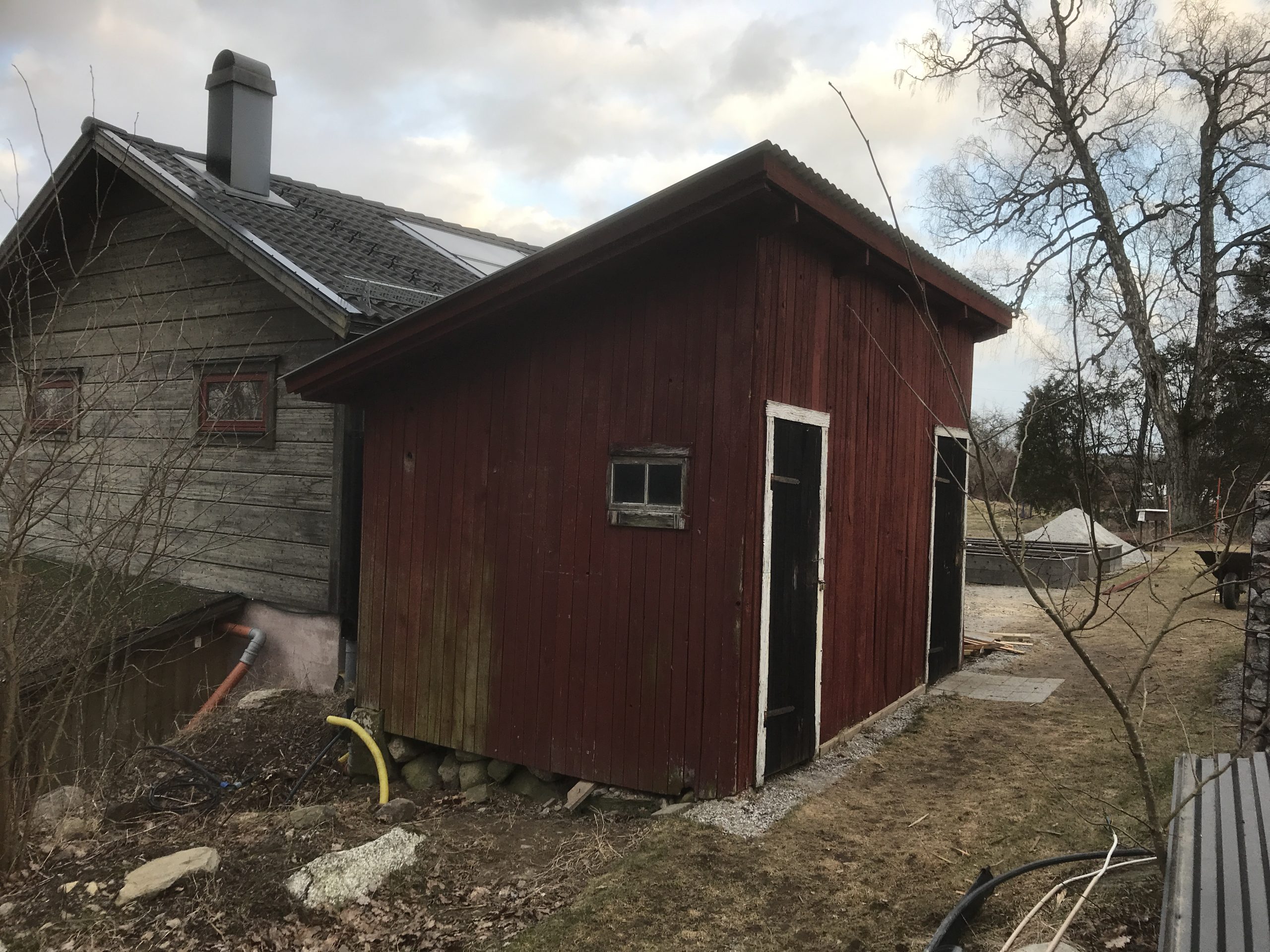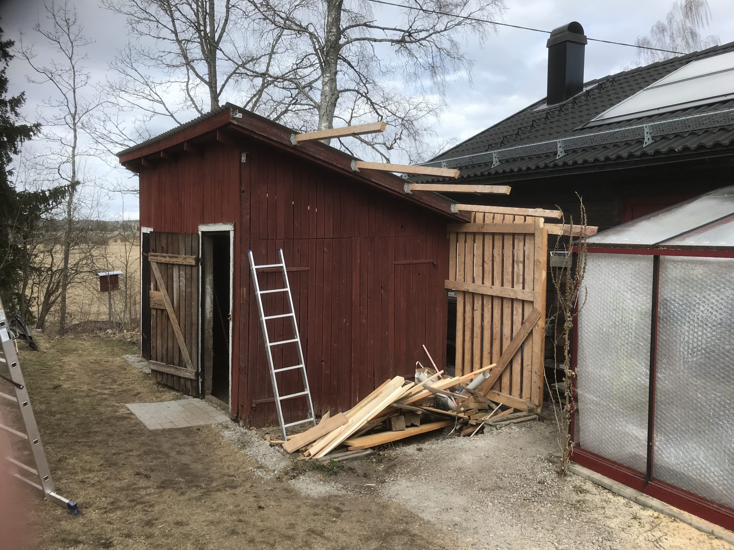 Vi har beslutat att bygga om vedboden till bastu. Vi inlädde med att tömma vedboden vilket var ett styvt arbete. Ujujuj vad mycket man kan få in i en gammal bod.