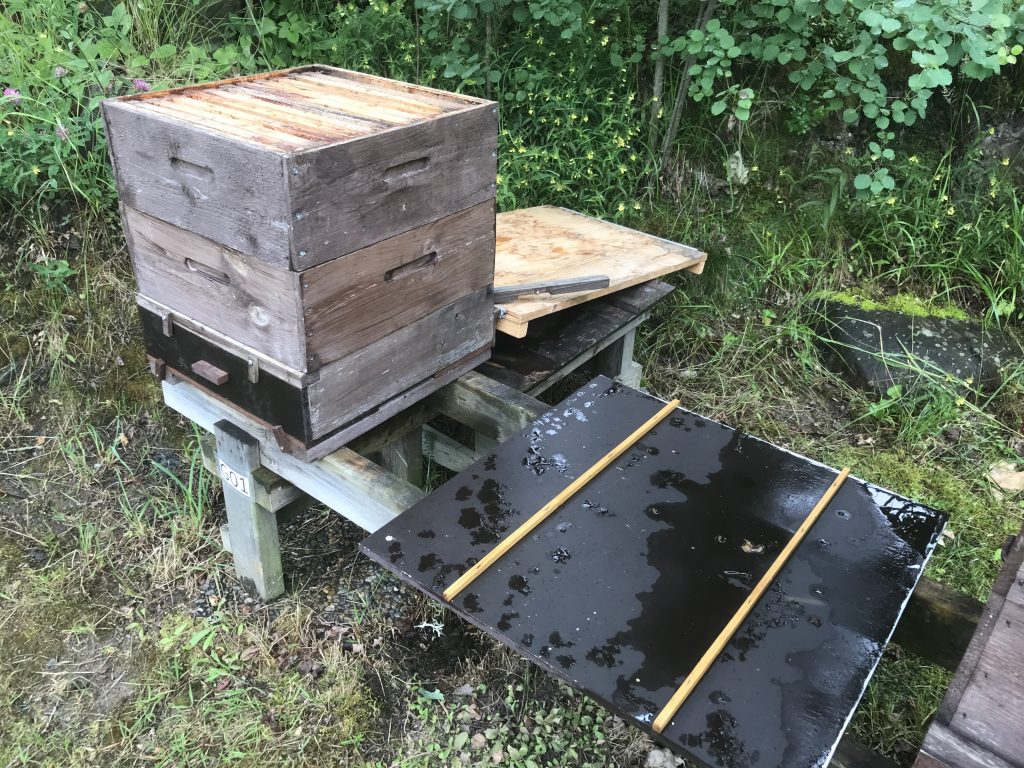 Jag har även i år haft tre bigårdar. En bigård här hemma i Golstavik med 10 platser samt en observationskupa, en bigård hos Ove Johansson i Hälglöt med 6 platser samt en bigård hos Gunnar Gustafsson i Högby med 8 platser.