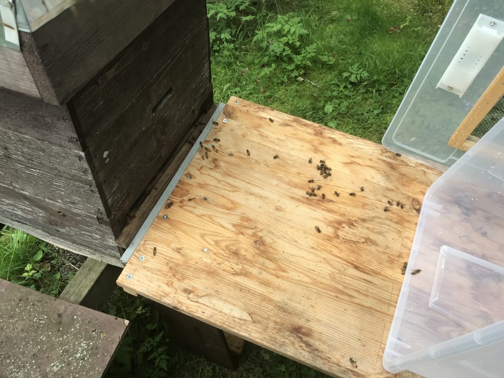 Jag genomförde bytet genom att “sila” alla bin genom ett spärrgaller.