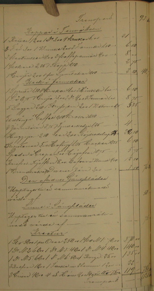 År 1887 den 5 Juni förrättades bouppteckning efter hemmansägaren Lars Olof Jansson i Slyte Lillkyrka Socken som afled den 30 Maj samma år och efter sig lemna de som sterbhusdelegare Enkan Johanna Mathilda Ersdotter samt med henne samaflade barn: Sönerna Lars August född den 18 Mars 1869, Karl Erik född den 30 Maj 1870, Karl Johan född den 20 September 1875 samt döttrarne: Mathilda Josefina född den 19 Mars 1872 Hanna Maria född den 28 April 1878.